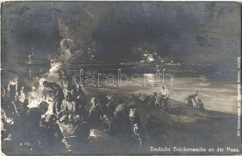 Deutsche Brückenwache an der Maas / WWI German military art postcard https://www.darabanth.com/de/361-Fernauktion/361.0/Ansichtskarten/Militaria~1500066/Deutsche-Bruckenwache-an-der-Maas-WWI-German-military-art-postcard~II2084984