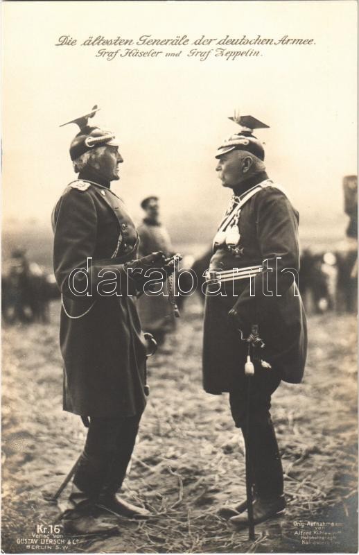 Die ältesten Generäle der deutschen Armee, Graf Häseler und Graf Zeppelin / WWI The oldest generals of the German Imperial Army, Gottlieb Graf von Haeseler and Graf Zeppelin. Orig. Aufnahme von Alfred Kühlewindt. Kr. 16. Verlag von Gustav Uersch & Co.