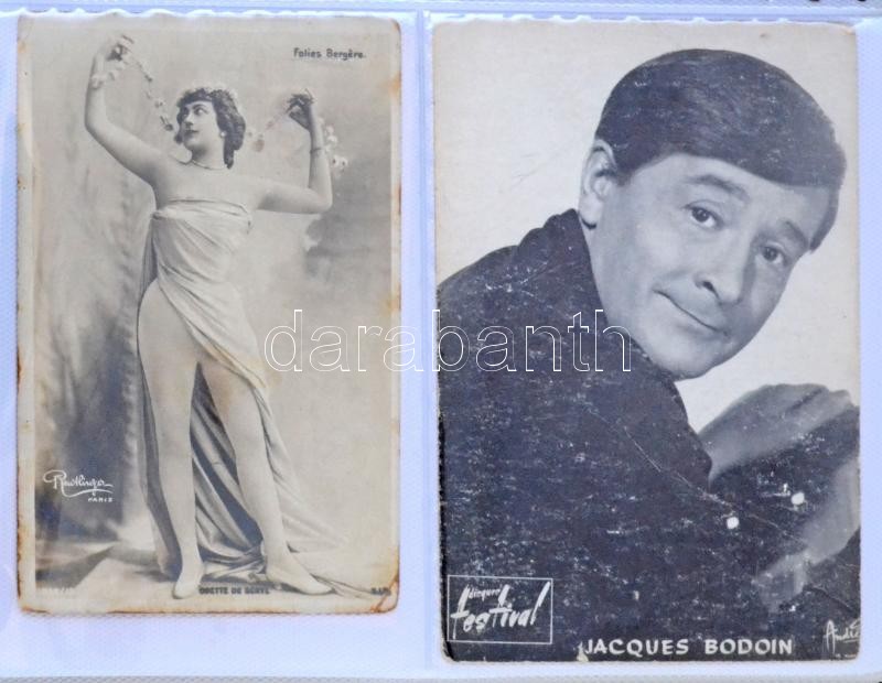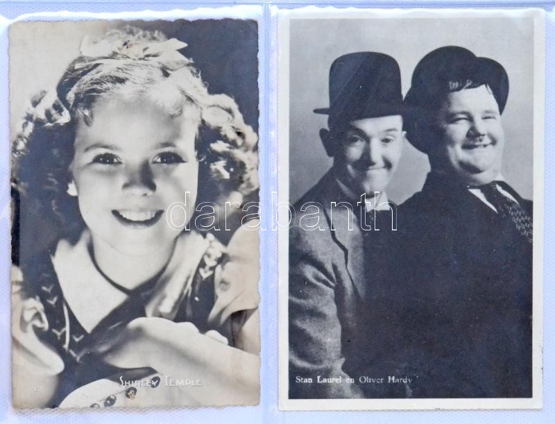 Kb. 100 db RÉGI motívum képeslap albumban: színészek és színésznők. vegyes minőség / Cca. 100 motive postcards in an album in mixed condition: actors and actresses