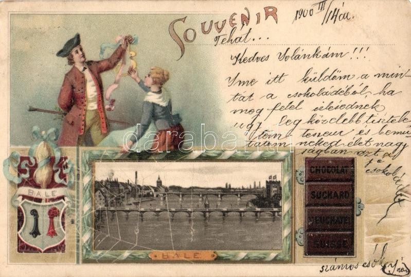 Beschreibung: 1900 Basel, Bale; Chocolat Suchard / chocolate advertisement card, litho