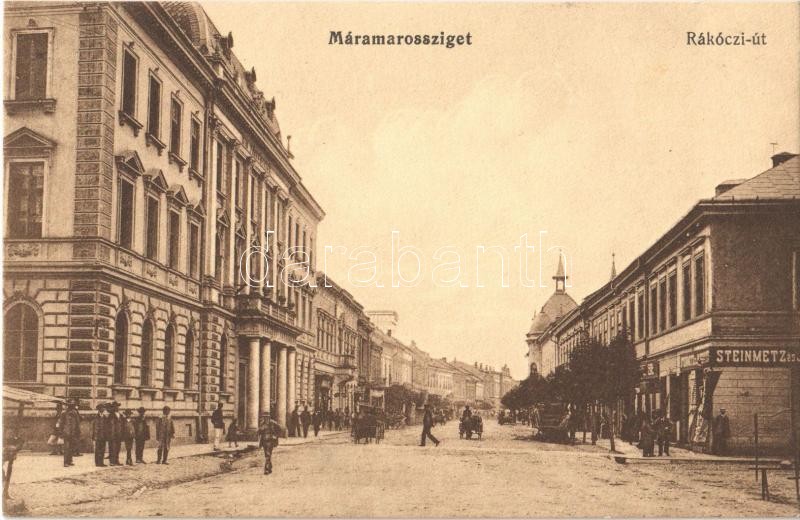 1913 Máramarossziget, Sighetu Marmatiei; Rákóczi út, Steinmetz és J. ü... https://www.darabanth.com/de/361-Fernauktion/361.0/Ansichtskarten/Siebenburgen~1500007/1913-Maramarossziget-Sighetu-Marmatiei-Rakoczi-ut-Steinmetz-es-J-uzlete-street-shops~II2082619