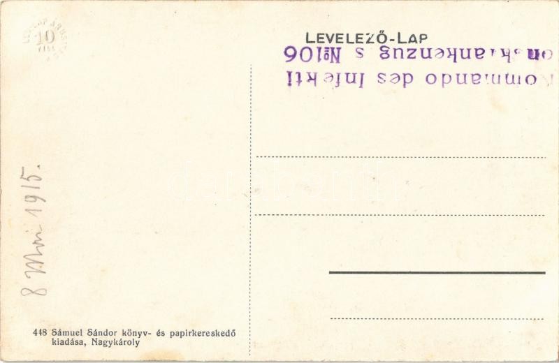 Beschreibung: 1915 Nagykároly, Carei; Gróf Károlyi kastély. Sámuel Sándor kiadása / castle + "Kommando des Infektionskrankenzuges No. 106." (fl)
