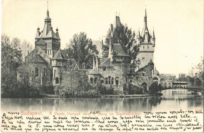 1905 Budapest XIV. Városliget, Vajdahunyad vára. Taussig Arthur 5116. https://www.darabanth.com/de/361-Fernauktion/361.0/Ansichtskarten/Ungarn~1500006/1905-Budapest-XIV-Varosliget-Vajdahunyad-vara-Taussig-Arthur-5116~II2085128