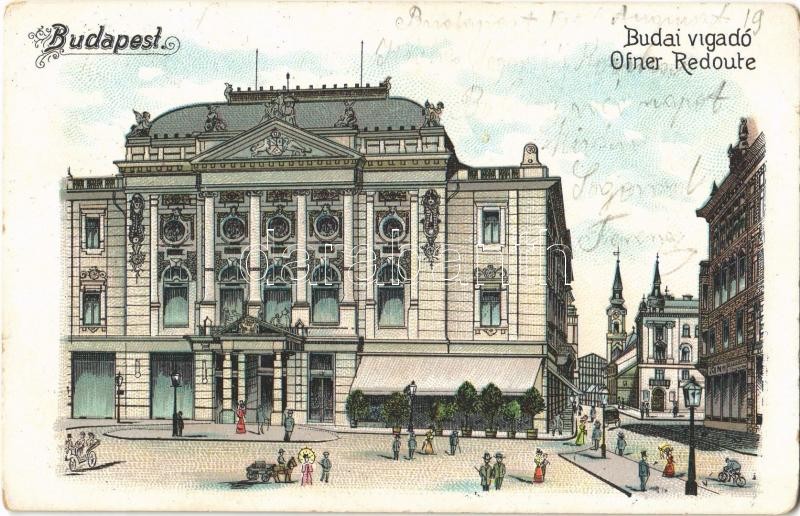 Budapest I. Budai Vigadó. litho (EK) https://www.darabanth.com/de/361-Fernauktion/361.0/Ansichtskarten/Ungarn~1500006/Budapest-I-Budai-Vigado-litho-EK~II2079837