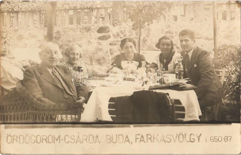 Budapest XII. Farkasvölgy, Ördögorom csárda, vendégek az asztalnál. ph... https://www.darabanth.com/de/361-Fernauktion/361.0/Ansichtskarten/Ungarn~1500006/Budapest-XII-Farkasvolgy-Ordogorom-csarda-vendegek-az-asztalnal-photo-szakadas-tear~II2081711