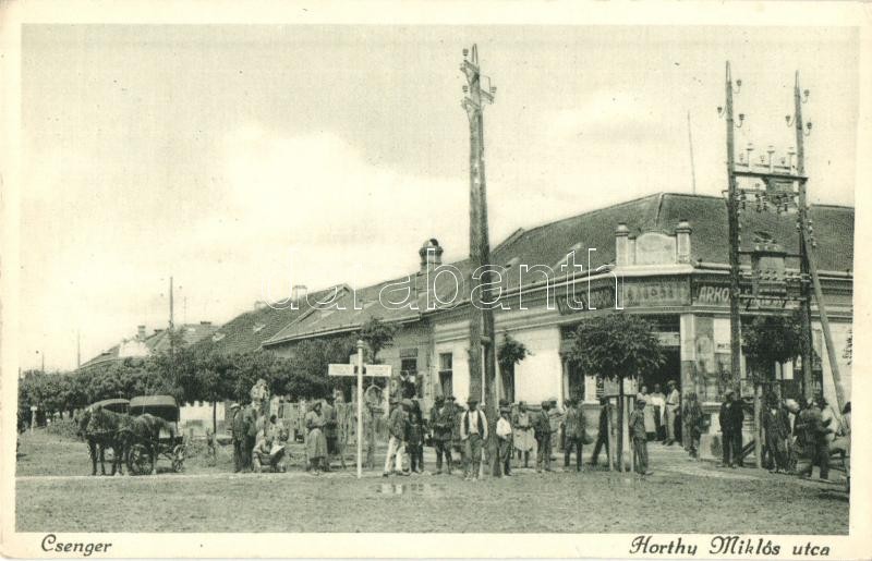 Csenger, Horthy Miklós utca, Árkosi Sándor üzlete, transzformátor https://www.darabanth.com/de/361-Fernauktion/361.0/Ansichtskarten/Ungarn~1500006/Csenger-Horthy-Miklos-utca-Arkosi-Sandor-uzlete-transzformator~II1917272