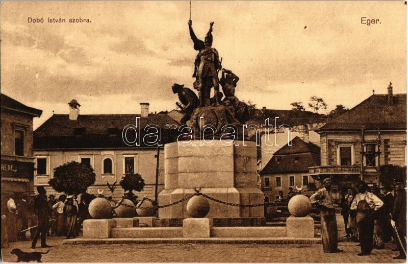 Eger, Dobó István szobra. Özv. Wahl Adolfné kiadása https://www.darabanth.com/de/361-Fernauktion/361.0/Ansichtskarten/Ungarn~1500006/Eger-Dobo-Istvan-szobra-Ozv-Wahl-Adolfne-kiadasa~II1960940