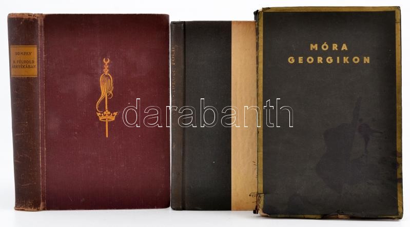 3 db könyv - Somfay Margit: A félhold árnyékában; Oravecz Gyula: Idegen föld; Móra Ferenc: Georgikon. Kötetenként változó kötésben és állapotban, híres illusztrátorok közreműködésével: Szász Endre, Petry Béla, Horváth Jenő