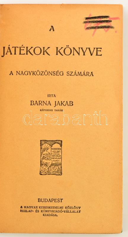 Barna Jakab: A játékok könyve. Bp.,é.n.Magyar Kereskedelmi Közlöny. Kiadói félvászon-kötés, javított, kopott borítóval és kissé sérült, javított, kopott gerinccel, intézményi bélyegzővel.
