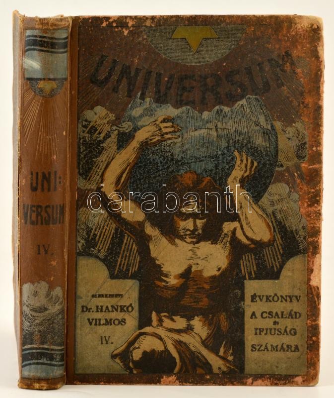 Universum: Évkönyv a család és az ifjúság számára. IV. kötete. Vadász és útleírásokkal. Szerk. Dr. Hankó Vilmos. Bp.,1909, Lampel R. (Wodianer F. és Fiai Rt.), IV+384 p. Kiadói festett, illusztrált, egészvászon-kötésben, kopott borítóval, kissé sérült gerinccel.