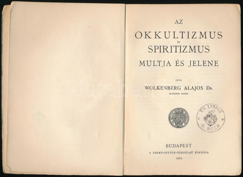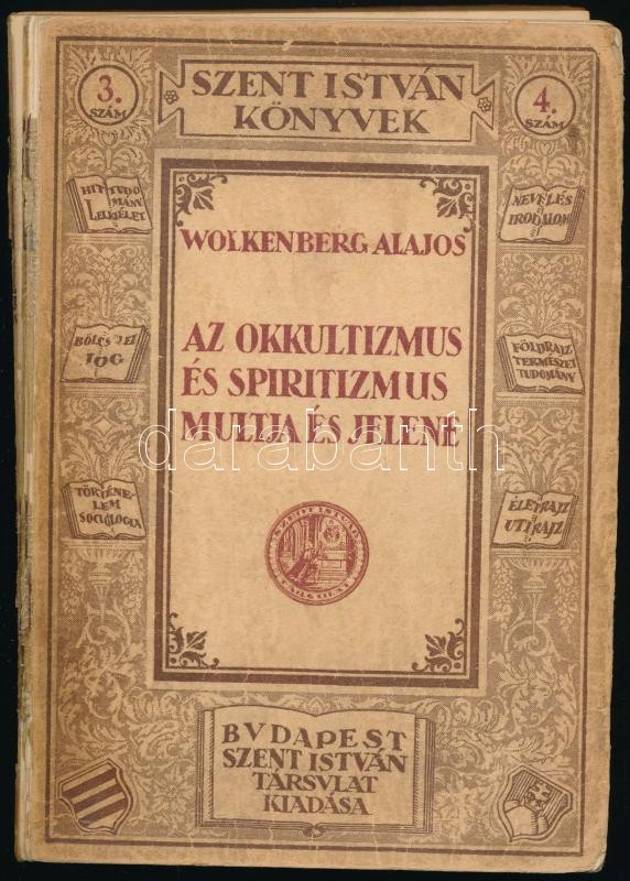 Wolkenberg Alajos: Az okkultizmus és spiritizmus múltja és jelene. Bp., 1923, Szent István Társulat. Kiadói papírkötés, sérült gerinccel, kopottas állapotban.