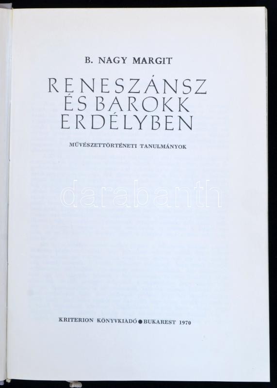 B. Nagy Margit: Reneszánsz és barokk Erdélyben. Bukarest, 1970, Kriter... https://www.darabanth.com/de/361-Fernauktion/361.0/Bucher/Bucher-Architektur-Kunst~1000007/B-Nagy-Margit-Reneszansz-es-barokk-Erdelyben-Bukarest-1970-Kriterion-356plus4-p-Fekete-feher~II2084598
