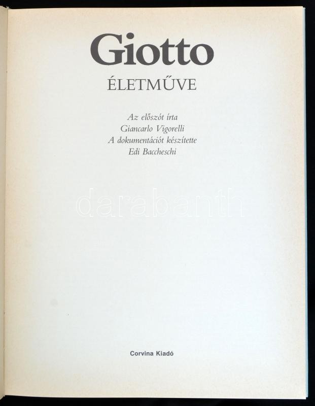Giotto életműve. Az előszót írta Giancarlo Vigorelli. A dokumentációt készítette: Edi Baccheschi. A művészet klasszikusai. Bp.,1984, Corvina. Igényes képanyaggal illusztrált. Kiadói kartonált papírkötés.
