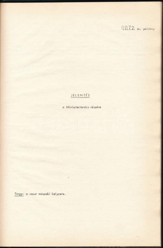 1969 A vasút műszaki helyzete. Jelentés a Minisztertanács részére. Mod... https://www.darabanth.com/de/361-Fernauktion/361.0/Bucher/Bucher-Bahn-Lokomotive~1000014/1969-A-vasut-muszaki-helyzete-Jelentes-a-Minisztertanacs-reszere-Modern-vaszon-kotesben-~II1989429