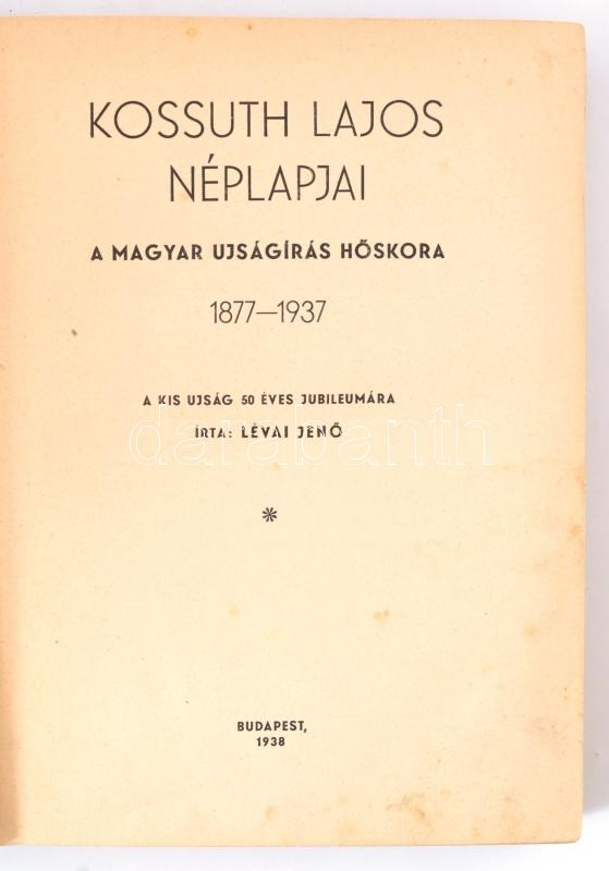 Lévai Jenő: Kossuth Lajos és néplapjai. A magyar újságírás hőskora.1877-1937. Bp., 1938. Kiadói, laza egészvászom kötésben, egy előzéklap kissé sérült.