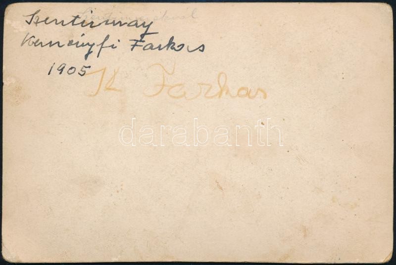 1905 Beállított fotó feliratozva. Szentirmay, Keményfi, Farkas. 14x9 c... https://www.darabanth.com/de/361-Fernauktion/361.0/Fotografie/Foto~500023/1905-Beallitott-foto-feliratozva-Szentirmay-Kemenyfi-Farkas-14x9-cm~II2082284