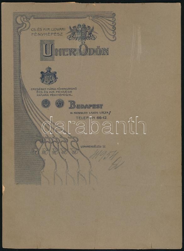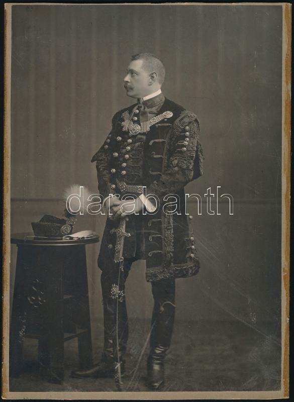1908 bajmoki Vajda Imre (1864-1944) pesti zsidó származású bankár, a Magyar Kereskedelmi Rt. igazgatója díszmagyaros fotója, keményhátú fotó Uher Ödön műterméből, a karton körbevágott, 23x16 cm