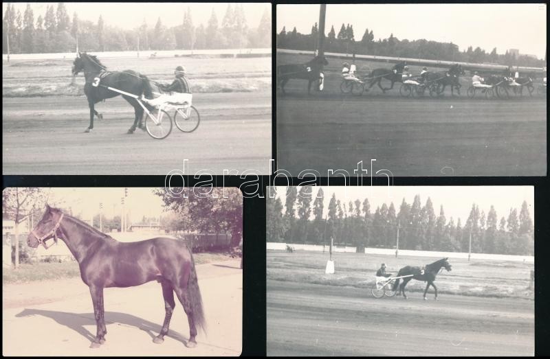 Beschreibung: cca 1975 Ügető lovak, Zeusz, Zápolya, Cumulus, Fűzfaliget, 4 db fotó, 9×12 cm