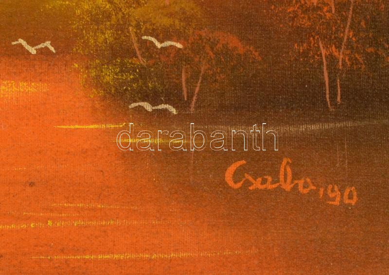 Beschreibung: Csaba István (?-): Folyópart. Olaj, vászon, jelzett, keretben, 34×49 cm