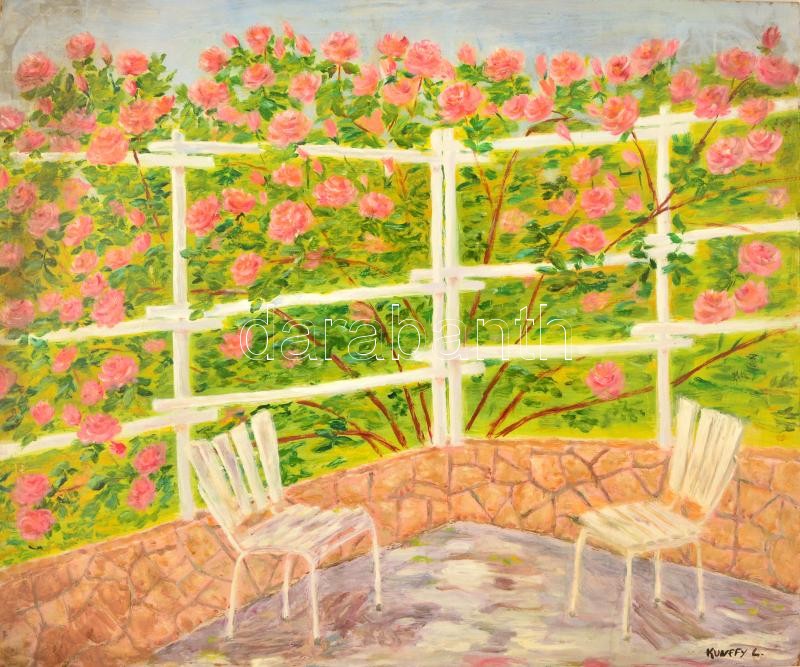 Kunffy jelzéssel: Virágos terasz. Olaj, farost, foltos, 68×82 cmcm https://www.darabanth.com/de/361-Fernauktion/361.0/Gemalde-und-Grafiken/Gemalde-und-Grafiken~500001/Kunffy-jelzessel-Viragos-terasz-Olaj-farost-foltos-68C39782-cmcm~II2062300