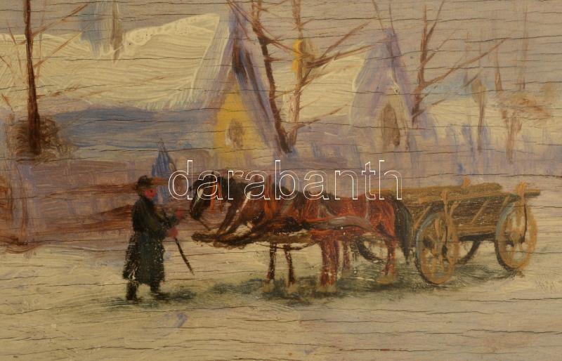 Beschreibung: Németh György (1888-1962): Téli utcarészlet. Olaj, falemez (repedezett), jelzett, üvegezett keretben, 11×16,5 cm