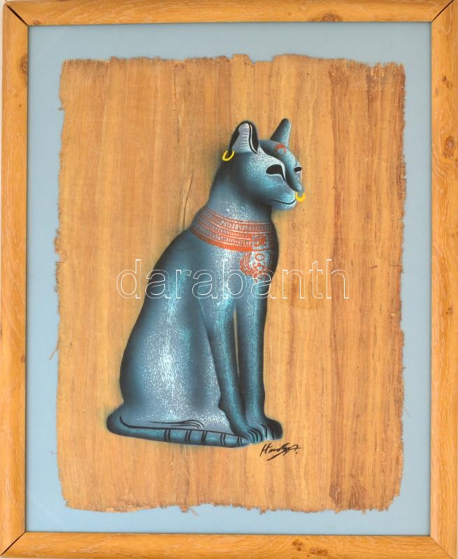 Beschreibung: Olvashatatlan jelzéssel: Egyiptomi cica. Tempera, papirusz, üvegezett keretben, 42×33 cm
