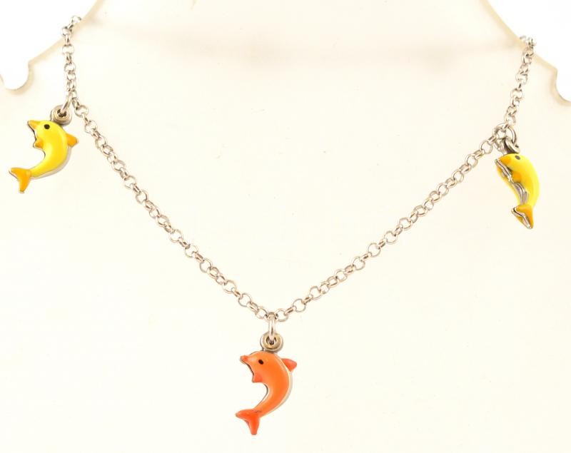 Beschreibung: Ezüst(Ag) zománcozott delfines karkötő, jelzett, állítható h: 15,5 - 17,5 cm, bruttó: 2,6 g