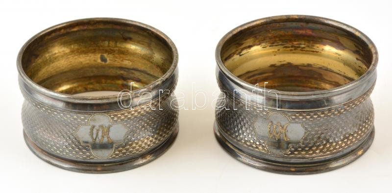 Beschreibung: 2 ezüstözött alpakka szalvétagyűrű monogrammal. d: 5,6 cm