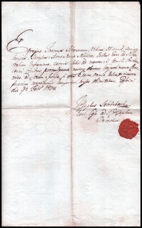Beschreibung: 1824 Pest, latin nyelvű egyházi irat viaszpecséttel