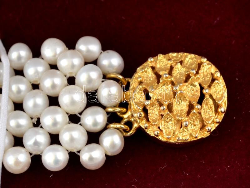 Beschreibung: Fűzött gyöngy karkötő, tokban, h: 18 cm