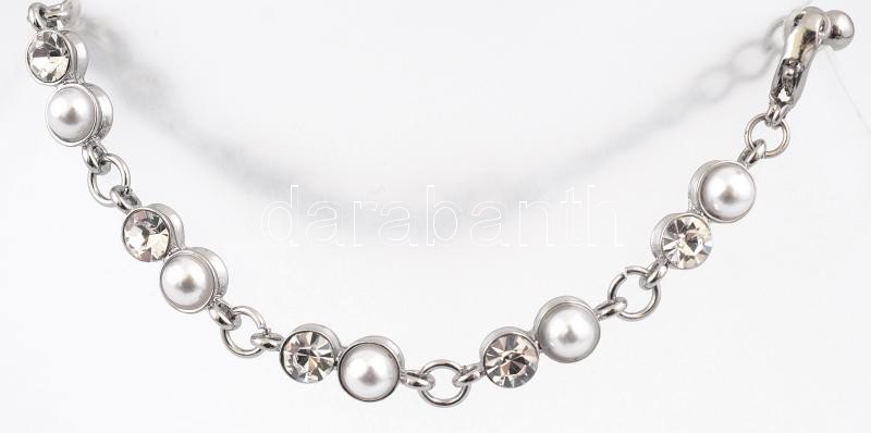 Beschreibung: Gyöngyökkel kirakott ezüstszínű bizsu karkötő, max. h: 20 cm