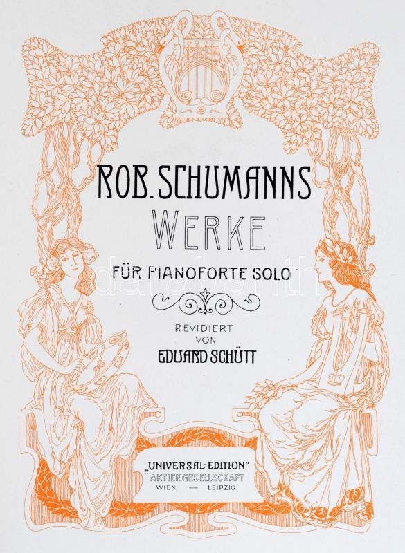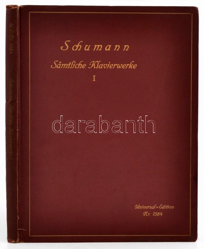 Robert Schumanns Sämtliche Klavierwerke. I. köt. Werke für Pianoforte Solo. (..gyermek jelenetek, levelek...stb.) Wien-Leipzig, én., "Universal-Edition". Német nyelven. Kissé kopott egészvászon-kötésben, 200 p.