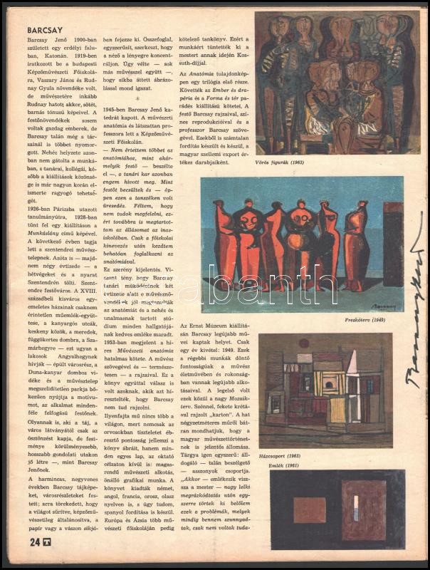 Beschreibung: Barcsay Jenő festőművész saját kezű aláírásai 3 db újság kivágáson