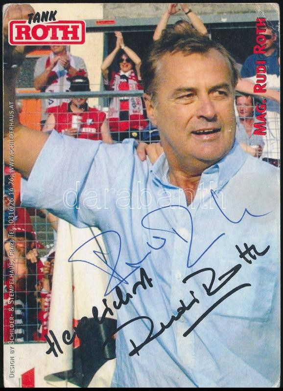 Rudolf Roth (1948- ) focista aláírása őt ábrázoló reklámlapon https://www.darabanth.com/de/361-Fernauktion/361.0/Kunst-Dokumente-andere-Sammelgebiete/Signatur~500022/Rudolf-Roth-1948-focista-alairasa-ot-abrazolo-reklamlapon~II1845997