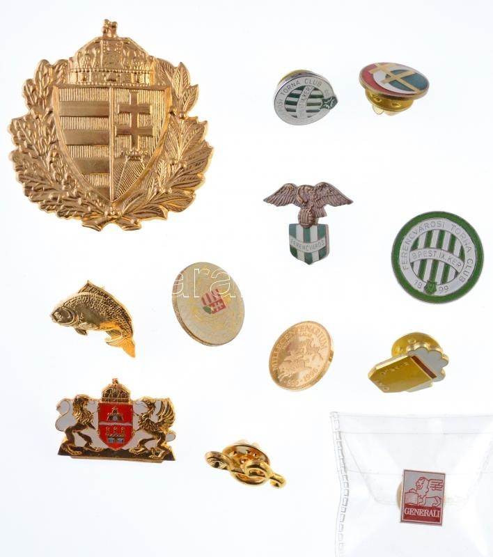 Beschreibung: 12db-os vegyes jelvény tétel, közte több FTC, "Magyarok Világszövetsége" T:1-,