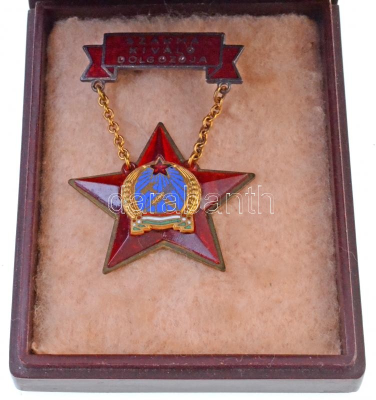 Beschreibung: ~1950. "Szakma Kiváló Dolgozója" zománcozott kitüntetés, hátlapon gravírozott "16433" sorszámmal, eredeti dísztokban T:2