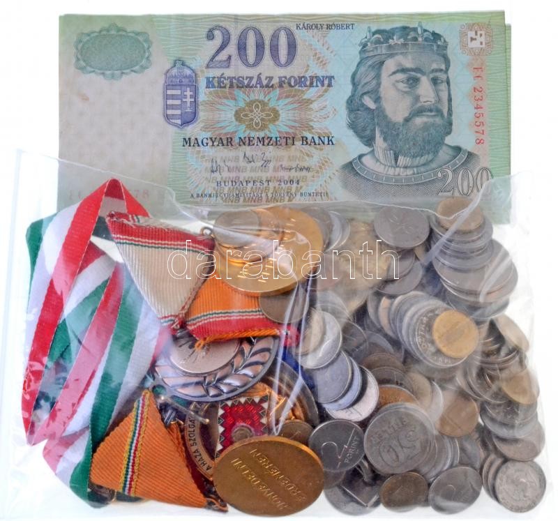Beschreibung: Vegyes numizmatika tétel, közte 2004-2006. 200Ft (2x), 2015-2019. 50Ft (2x), "Honvédelmi érdemérem" T:vegyes