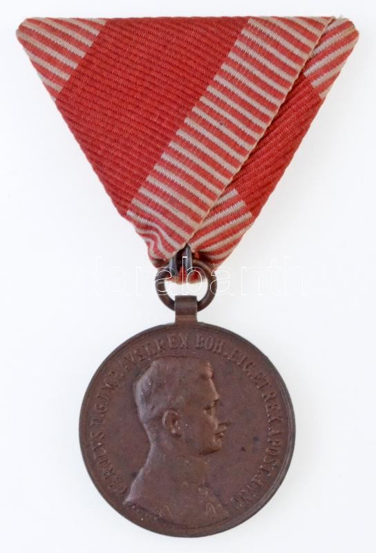 1917. "Károly Bronz Vitézségi Érem" Br kitüntetés nem eredeti mellszalagon. Szign.: Kautsch T:1-