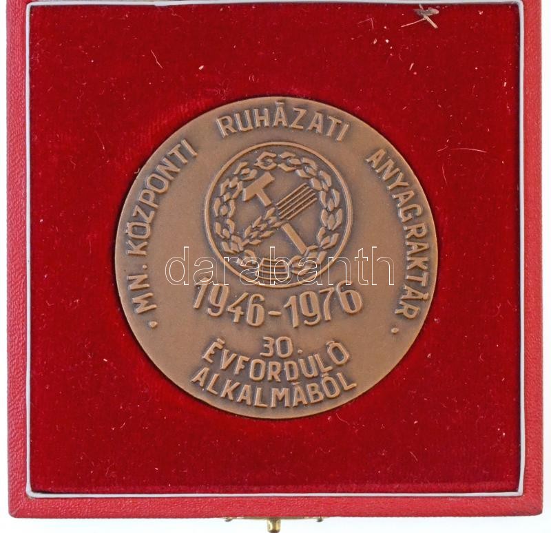 Beschreibung: 1976. "MN Központi Ruházati Anyagraktár - 30. évforduló alkalmából - 1946-1976" egyoldalasa Br plakett, eredeti tokban