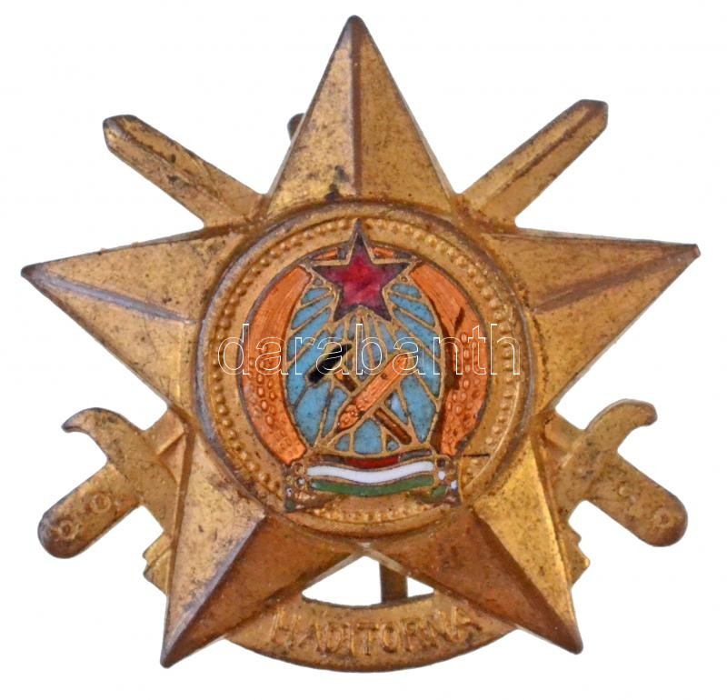 Beschreibung: ~1949. "Haditorna arany fokozat" zománcozott Rákosi-címerrel, aranyozott fém jelvény T:2