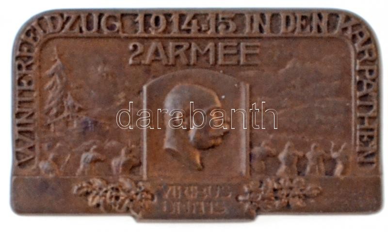 Osztrák-Magyar Monarchia 1915. "Téli hadjárat a Kárpátokban - 2. Hadsereg 1914-15" tombak sapkajelvény "BILDH. GURSCHNER WIEN VII/2" gyártói jelzéssel (23x40mm) T:1-