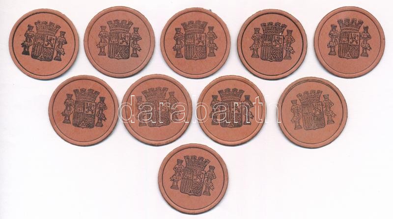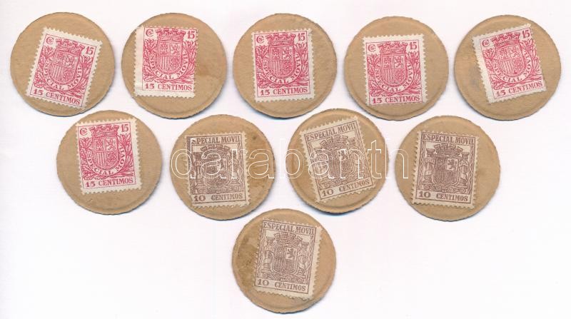 Spanyolország ~1930. 10c (4x) + 15c (6x) bélyeges szükségpénz T:I-