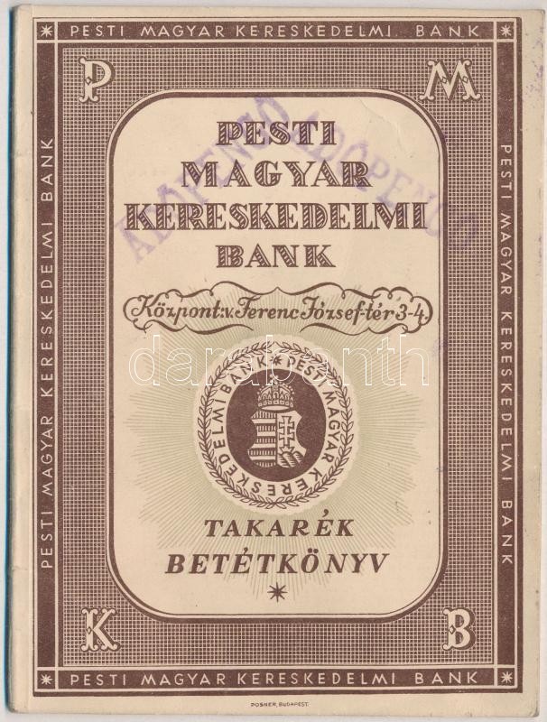 1946. "Pesti Magyar Kereskedelmi Bank" takarék betétkönyve b... https://www.darabanth.com/de/361-Fernauktion/361.0/Numismatik/Numismatische-Dokumente-und-Briefe~2000003/1946-Pesti-Magyar-Kereskedelmi-Bank-takarek-betetkonyve-bejegyzesekkel~II2063846
