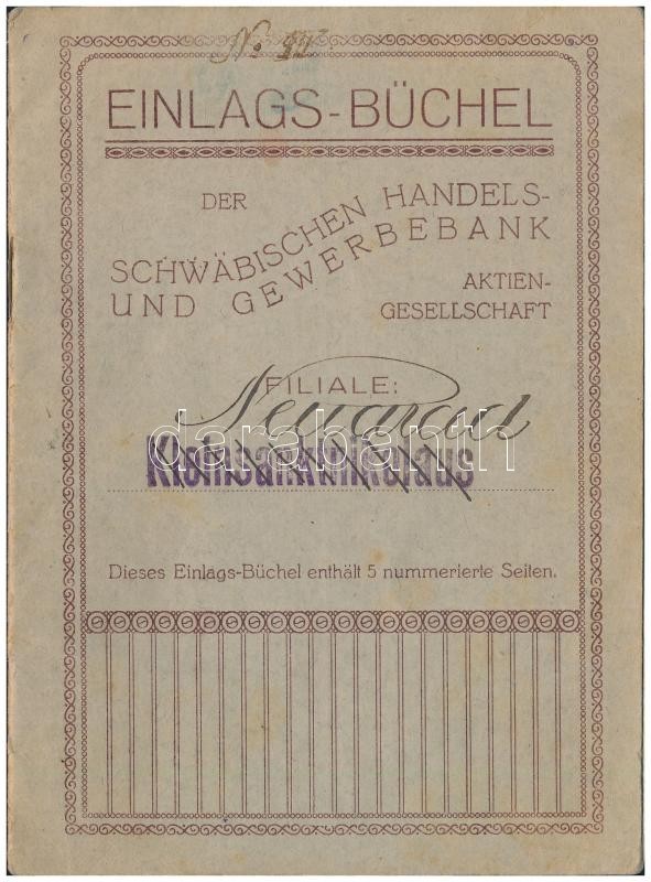 Beschreibung: Románia / Kleinsanktnikolaus (Kisszentmiklós/Új-Arad) 1927. "Einlags-Büchel der Schwäbishen Handels- und Gewerbebank Aktiengesellschaft" betéti könyve, bejegyzésekkel, bélyegzéssel