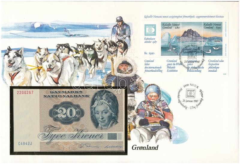 Denm... https://www.darabanth.com/de/361-Fernauktion/361.0/Numismatik/Umschlage-mit-Munzen-und-Banknoten~2000004/Dania-1972-20K-boritekon-gronlandi-belyeggel-belyegzessel-TI-Denmark-1972-20-Kroner-in-~II2075282