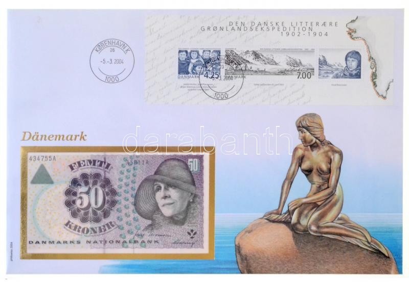 Denmark 2... https://www.darabanth.com/de/361-Fernauktion/361.0/Numismatik/Umschlage-mit-Munzen-und-Banknoten~2000004/Dania-2001-50K-felbelyegzett-boritekban-belyegzessel-TI--Denmark-2001-50-Kronen-in-envelo~II2074473