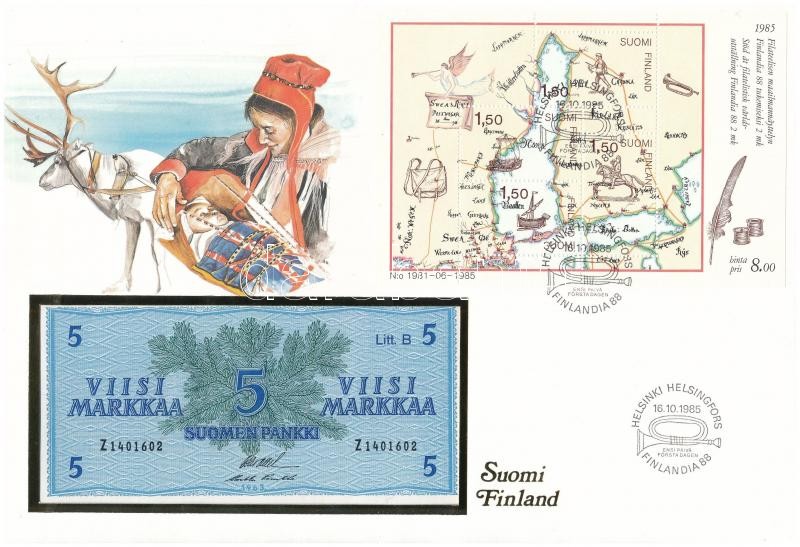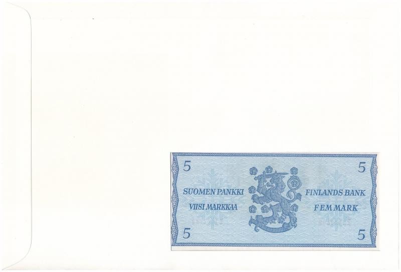 Finlan... https://www.darabanth.com/de/361-Fernauktion/361.0/Numismatik/Umschlage-mit-Munzen-und-Banknoten~2000004/Finnorszag-1963-5M-felbelyegzett-boritekban-belyegzessel-T1-Finland-1963-5-Markkaa-in-env~II2076834