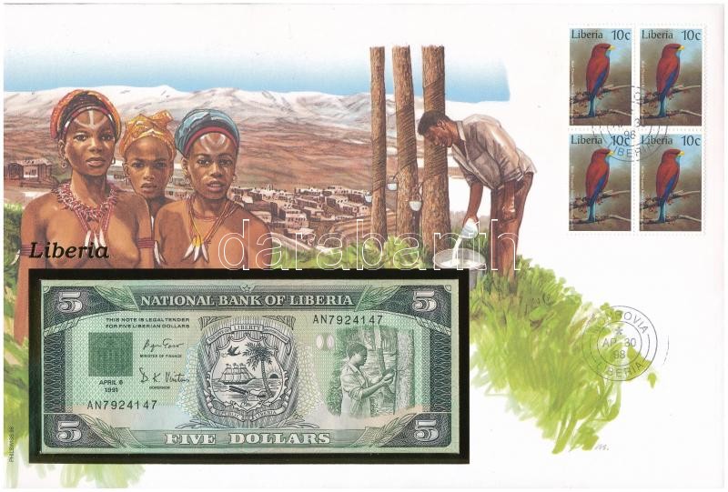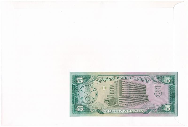 Liberia ... https://www.darabanth.com/de/361-Fernauktion/361.0/Numismatik/Umschlage-mit-Munzen-und-Banknoten~2000004/Liberia-1991-5USD-felbelyegzett-boritekban-belyegzessel-TI--Liberia-1991-5-Dollars-in-envel~II2075898