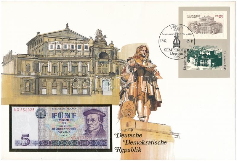 GDR 1975. 5 ... https://www.darabanth.com/de/361-Fernauktion/361.0/Numismatik/Umschlage-mit-Munzen-und-Banknoten~2000004/NDK-1975-5M-felbelyegzett-boritekban-belyegzessel-TI--GDR-1975-5-Mark-in-envelope-with-sta~II2074422