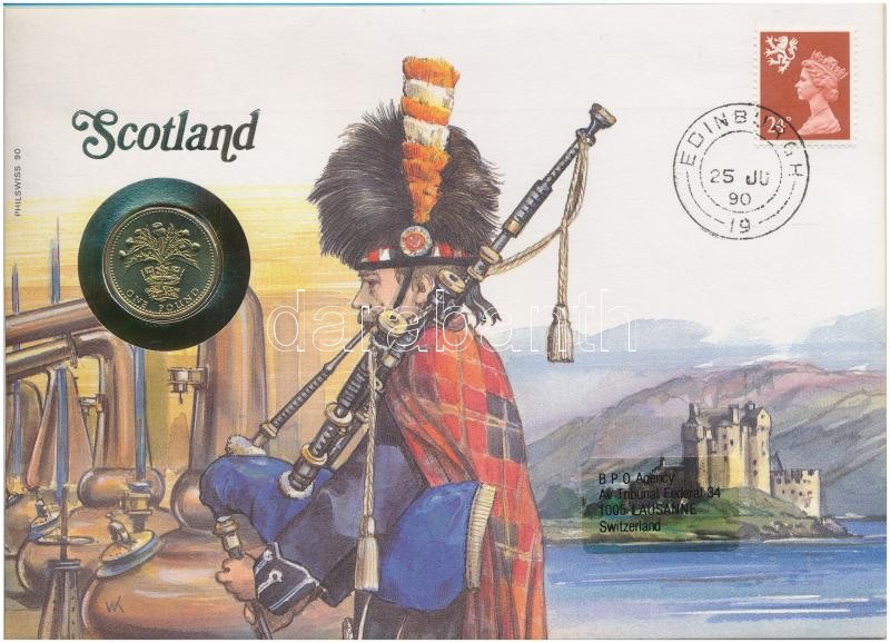 Great Britain 1989. 1 Pound in envelope with stamp and cancellation, with German description C:UNC